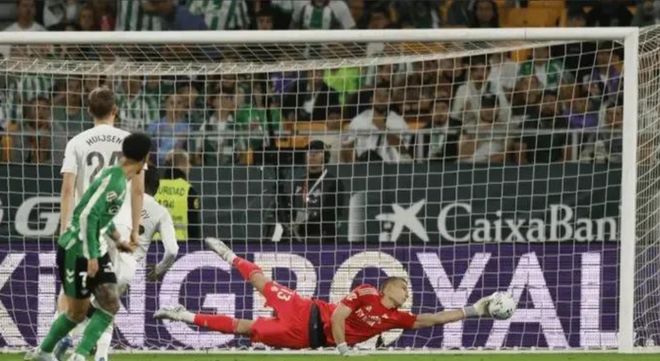 补时最后时刻,贝莱林读秒绝平,皇马1-1憾平对手,连续4个赛季客场无法在贝蒂斯主场取胜,争冠希望几乎破灭。目前皇马先赛一轮落后巴萨8分,巴萨只需再拿8分即可夺冠,甚至可能在国家德比当天锁定冠军。